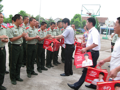为喜迎第八十二个建军节的到来,7月27日下午,Z6·尊龙凯时党总支义与乌经济开发区党组织第四区域的其他7个企业支部,带着袜子、饮料以及为军人特制的镜框等礼品,来到金华市武警一中队,向部队官兵献上了一份节日厚礼。并与武警官兵们一起打篮球、表演精彩的晚会节目,与官兵们齐唱歌共联欢,度过了一个难忘的节日。